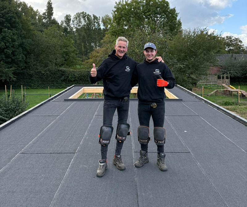 Wij zijn Gert en Nigel, vader en zoon, en samen vormen we het team van “Van Katwijk Platdakservice”. Met jarenlange ervaring en een passie voor het vak staan we bekend als betrouwbare en hardwerkende dakdekkers. We houden van aanpakken, denken in oplossingen en hebben altijd oog voor kwaliteit.